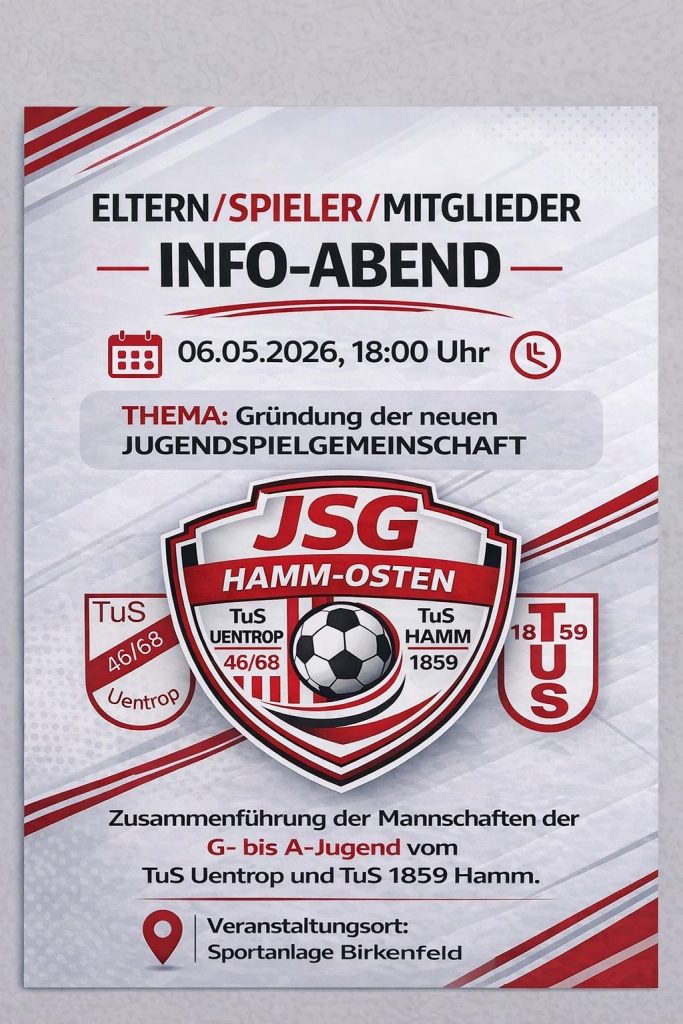 Im Rahmen der Veranstaltung möchten wir die JSG Hamm Osten vorstellen und über unsere Ziele, Mannschaften sowie Trainingsmöglichkeiten informieren. Darüber hinaus möchten wir gemeinsam einen Blick in die Zukunft des Jugendfußballs in unserer Region werfen und Raum für Fragen und Austausch bieten.